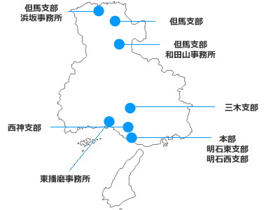 神戸市西区、加古川市、播磨町、稲美町、三木市、但馬地域に